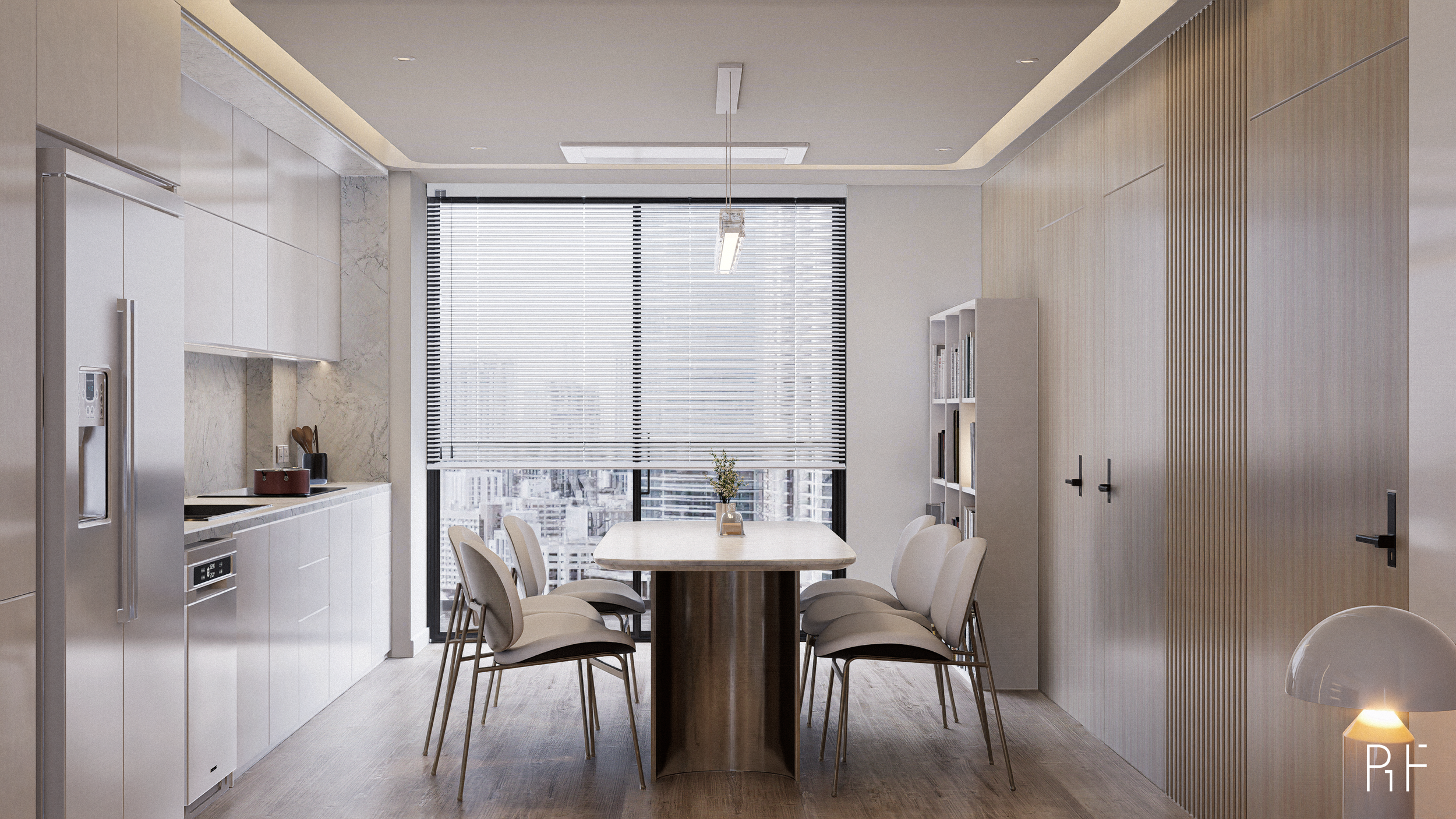 This apartment is a reflection of my vision, designed with intention to create a space that is both elegant and livable. I carefully considered every element, from the cool, neutral tones that bring a sense of calm to the seamless integration of lighting that enhances the ambiance. The sleek furnishings, including the low-profile sofa and marble coffee table, were chosen to balance comfort with sophistication. Floor-to-ceiling windows open the space to natural light, connecting the interior with the city beyond. Every detail, from recessed lighting to custom cabinetry, was thoughtfully designed to ensure a refined yet effortless living experience.